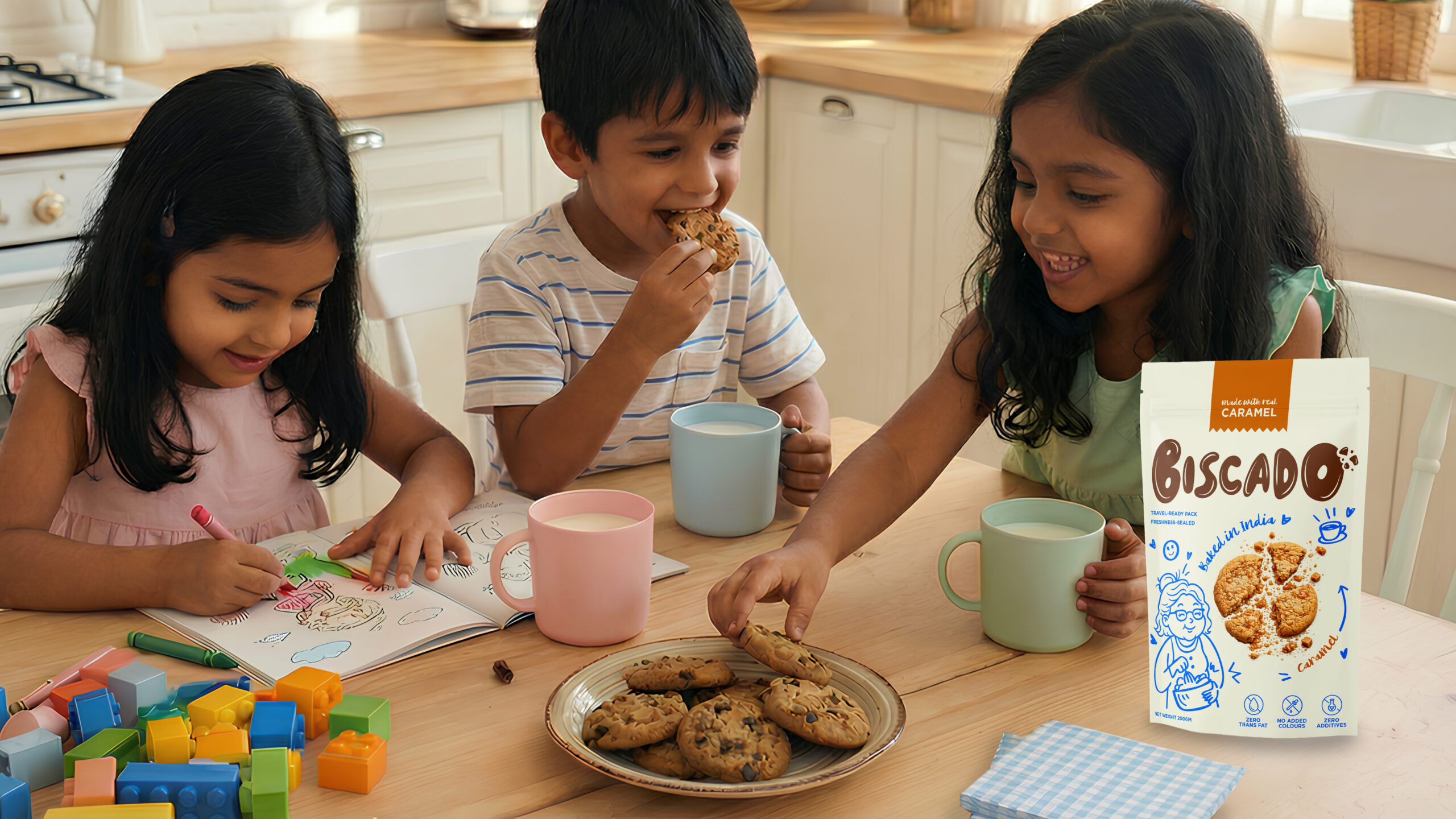 Step into cookie heaven with Biscado – little bites of joy that make every moment special! Brimming with 100% goodness and only the best bakery-grade ingredients, Biscado Cookies are free from nasties like artificial additives. Imagine a satisfying, crispy edge giving way to a warm, soft, chewy centre, bursting with rich indulgence. What you get is pure joy and satisfaction. In every bite. Made with the utmost love and care – no shortcuts allowed here, we promise, our cookies exude the cosy warmth of homemade treats that we so cherish. Without doubt, Biscado cookies’ global flavours charm just about everyone, from tiny tots to the big kids at heart.